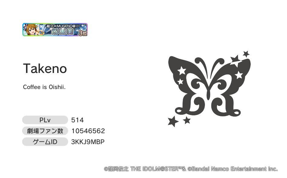 基本情報 名前:Takeno PLv:298 → 376 過去記録 イベランへの動機 「Star Impression」で断念したTPRのリベンジ 自分がミリシタを始めてから6度目の楽曲付きイベントとなる「Star Impression」でのこと 当時TPR(100位以内)を目指していましたが、3日目105位まで進んだ